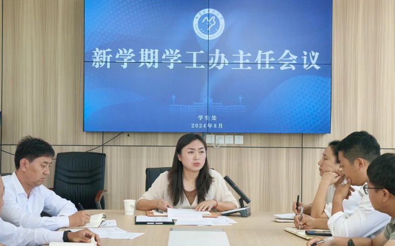 会上,尚丹从迎新现场布置、报到流程理顺、学生宿舍安排、应急事件处置等方面做了详细的部署,她要求全体学工人员要以热情周到的服务迎接新生,确保2024级迎新工作顺利进行。她还从思想政治教育、法律法规与校规校纪教育、安全教育、心理健康教育、文明修身教育、优良学风教育、奖助政策宣讲等方面对新生入学教育做了具体的安排。要求各学院要依照学校文件合理设计和安排好新生入学教育内容和时间,帮助2024级新生提供有效的学习、生活指导。学生处副处长郝建辉对新生军训工作进行了部署。学生处副处长乔世成针对各学工办主任提出的老生住宿和新生家长接待引导、迎新期间出入公寓等问题做出了解答。