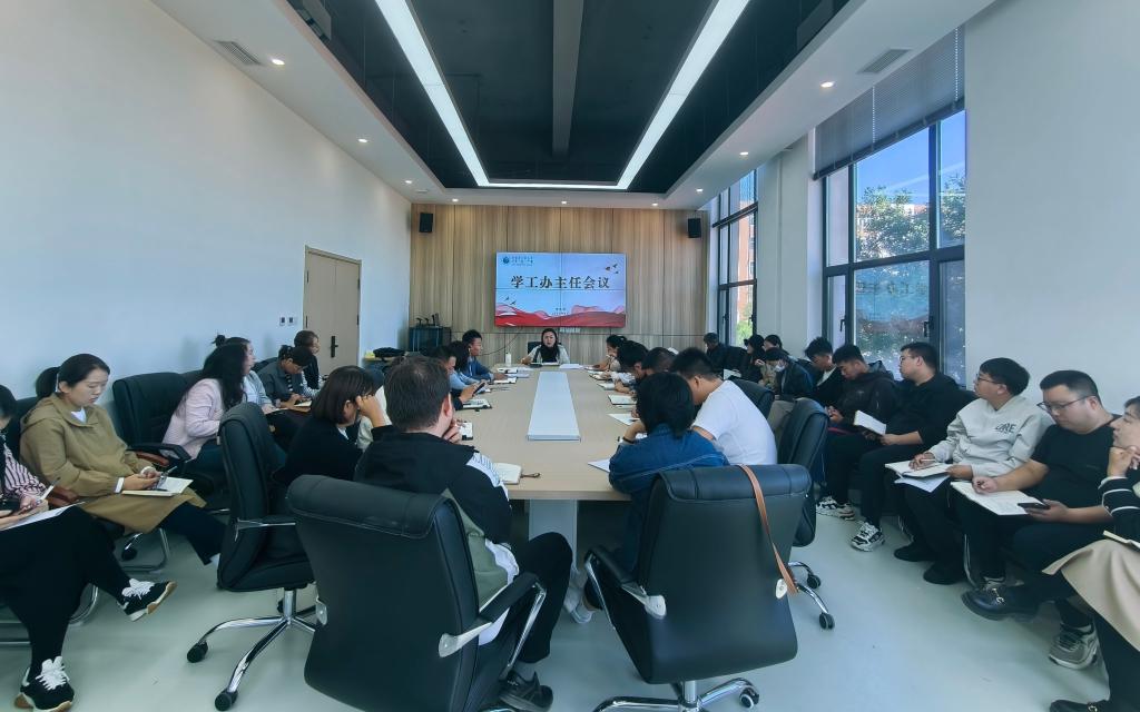 为进一步提升学生教育与管理服务水平,加强“十一”国庆节期间校园安全稳定,9月25日,学生处在大学生“一站式”服务中心二楼会议室召开学工办主任会议。会议由学生处处长尚丹主持,学生处班子成员、各科室负责人和各学院学工办主任参加会议。