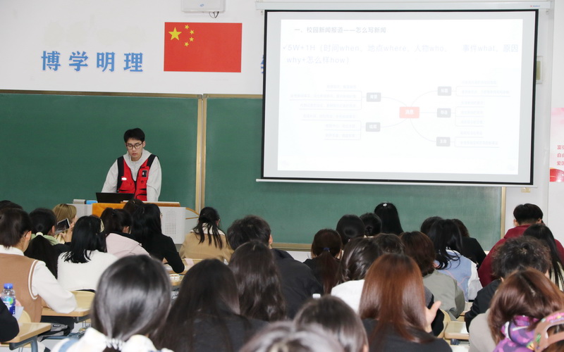 11月3日晚,学生处在西拉木伦校区402教室举办新媒体宣传和运营能力提升培训。培训由易班媒体工作站站长常馨圆主持,邀请大学生记者团成员石琨瑶、孙坤硕、陈则宇、李婷、王浩勇五位同学分别主讲,学生处各学生组织成员100余人参加。