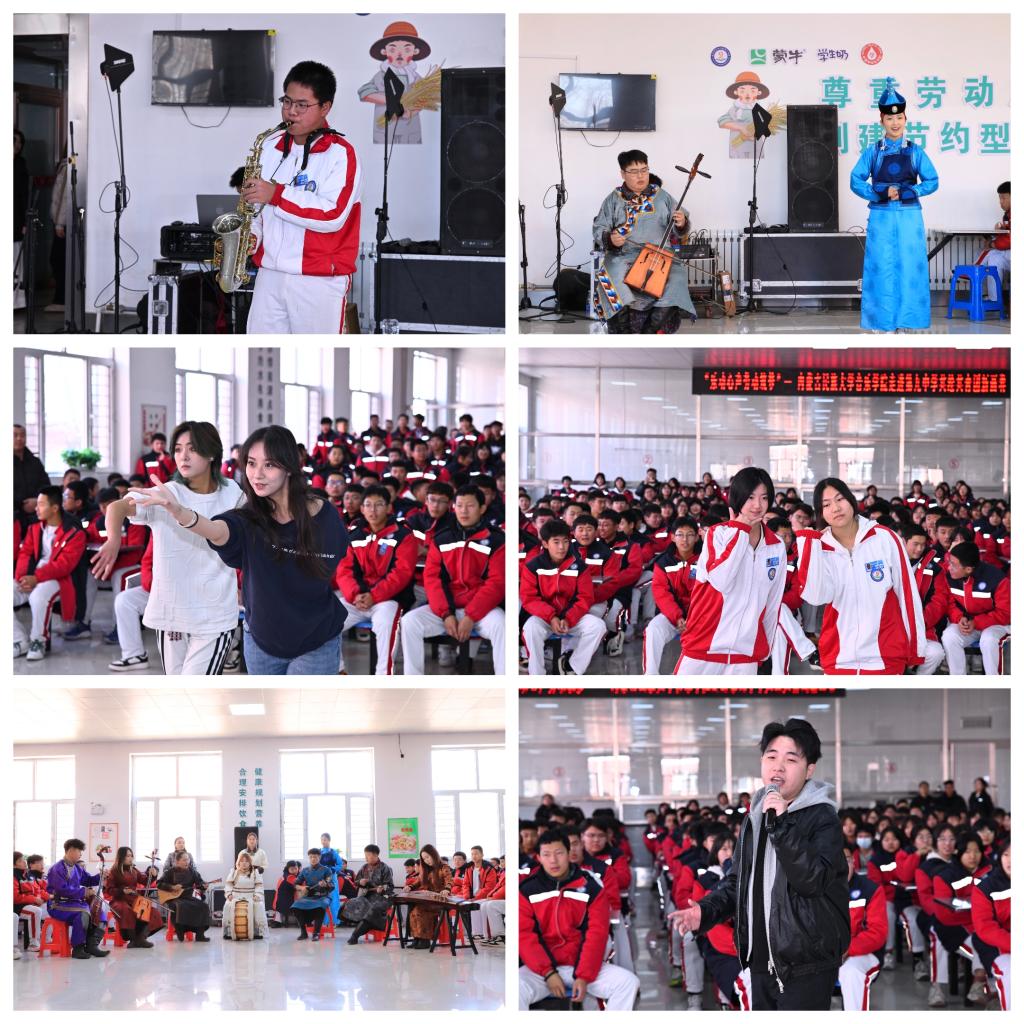 11月17日上午,内蒙古民族大学音乐学院在通辽市第九中学开展了一场热烈的劳动教育实践活动。音乐学院的师生们怀着满腔热忱与专业技艺,与第九中学的师生们共同绘制了一幅青春与劳动交织的美好画卷,并在此基础上达成了初步的深度合作意向,开启了劳动教育合作的新纪元。