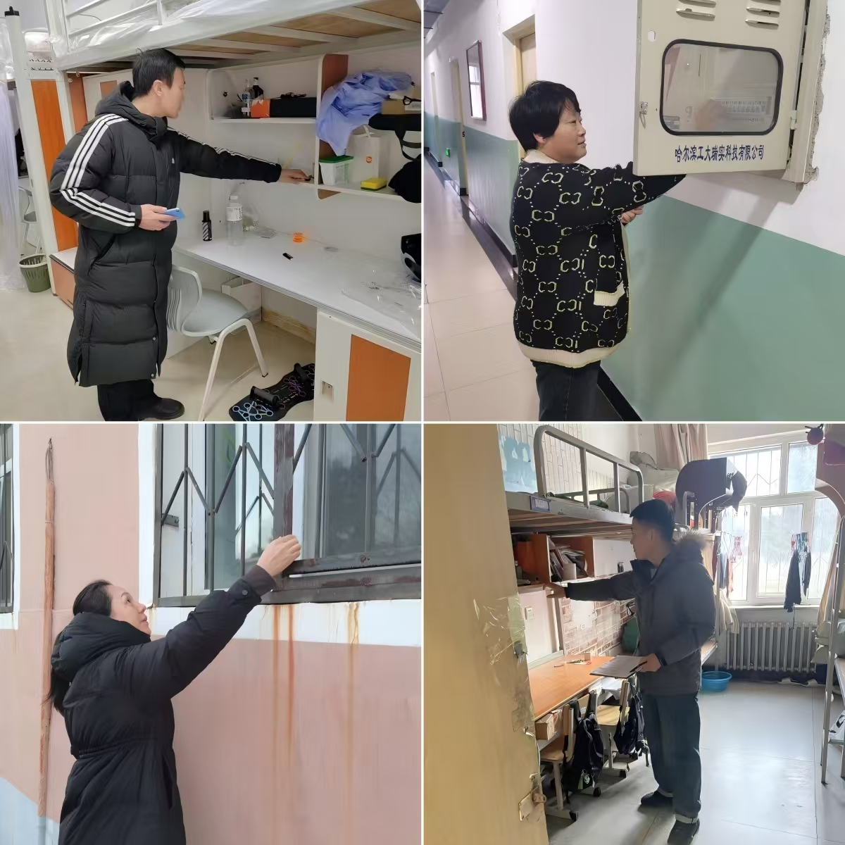 检查过程中,全体公寓管理员深入到每一间学生宿舍,重点排查大功率电器、私拉乱接电线、门窗破损及关闭、人走断电等情况。同时,全面检查了宿舍公共区域应急照明灯、消防通道、楼梯及扶手、走廊墙体、配电室等是否完好。此次安全隐患排查共发现学生宿舍用电安全隐患36个,门窗家具设施损坏106处。目前,这些问题已全部建立台账并采取相应措施进行整改。