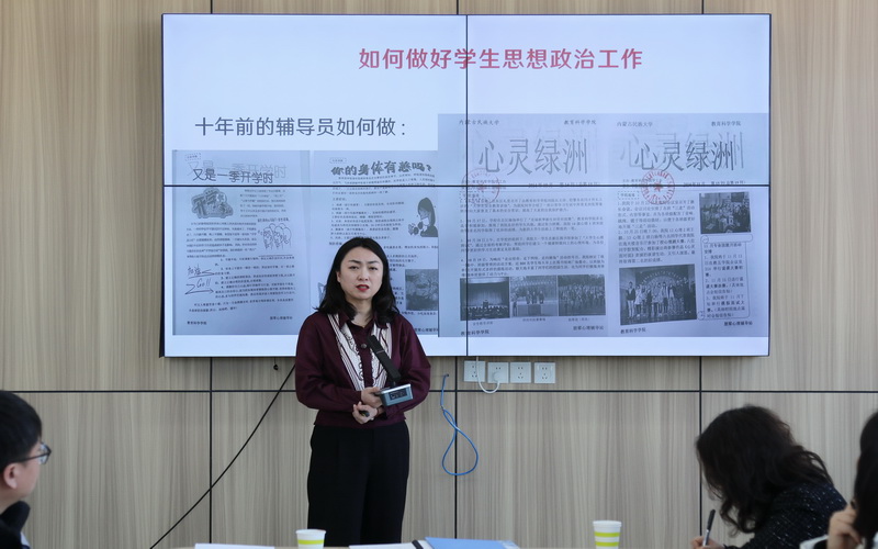 为提升学校学工队伍学生思想政治教育工作水平,2月21日,在霍林河校区大学生“一站式”服务中心二楼会议室。党委学生工作部部长尚丹以《以“三早”为例——如何做好学生思想政治教育工作》为题作专题培训。学生工作部副部长乔世成、萨茹拉,学工部相关科室负责人及各学院学工办主任参加培训。