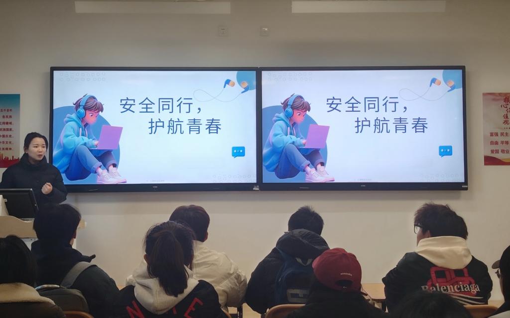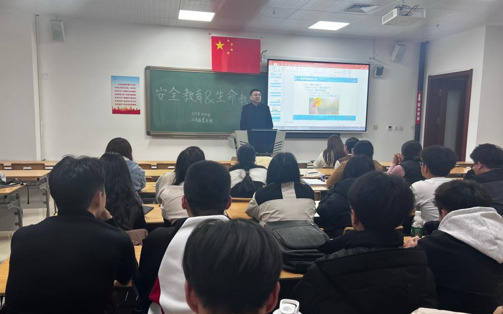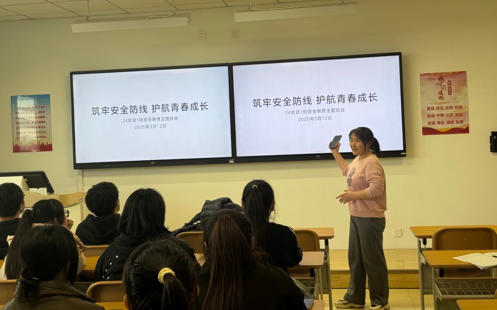 主题班会以安全教育为核心,辐射全校27个学院,实现全体学生深度参与。活动内容不仅涵盖交通安全、消防安全、用电安全、食品安全、传染病防治、防溺水等生活安全领域,还针对防范金融诈骗、防“校园贷”、防学生欺凌等展开深度剖析。通过引导学生研习《国家安全法》《国旗法》《反间谍法》《反恐怖主义法》等重要法律法规,将法治观念的种子深植于学生心中。